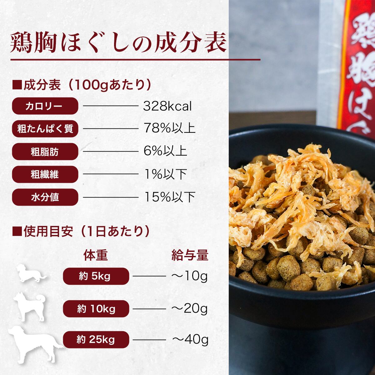 『ふりかけ専門店 犬乃馳走屋』の鶏胸ほぐしは、