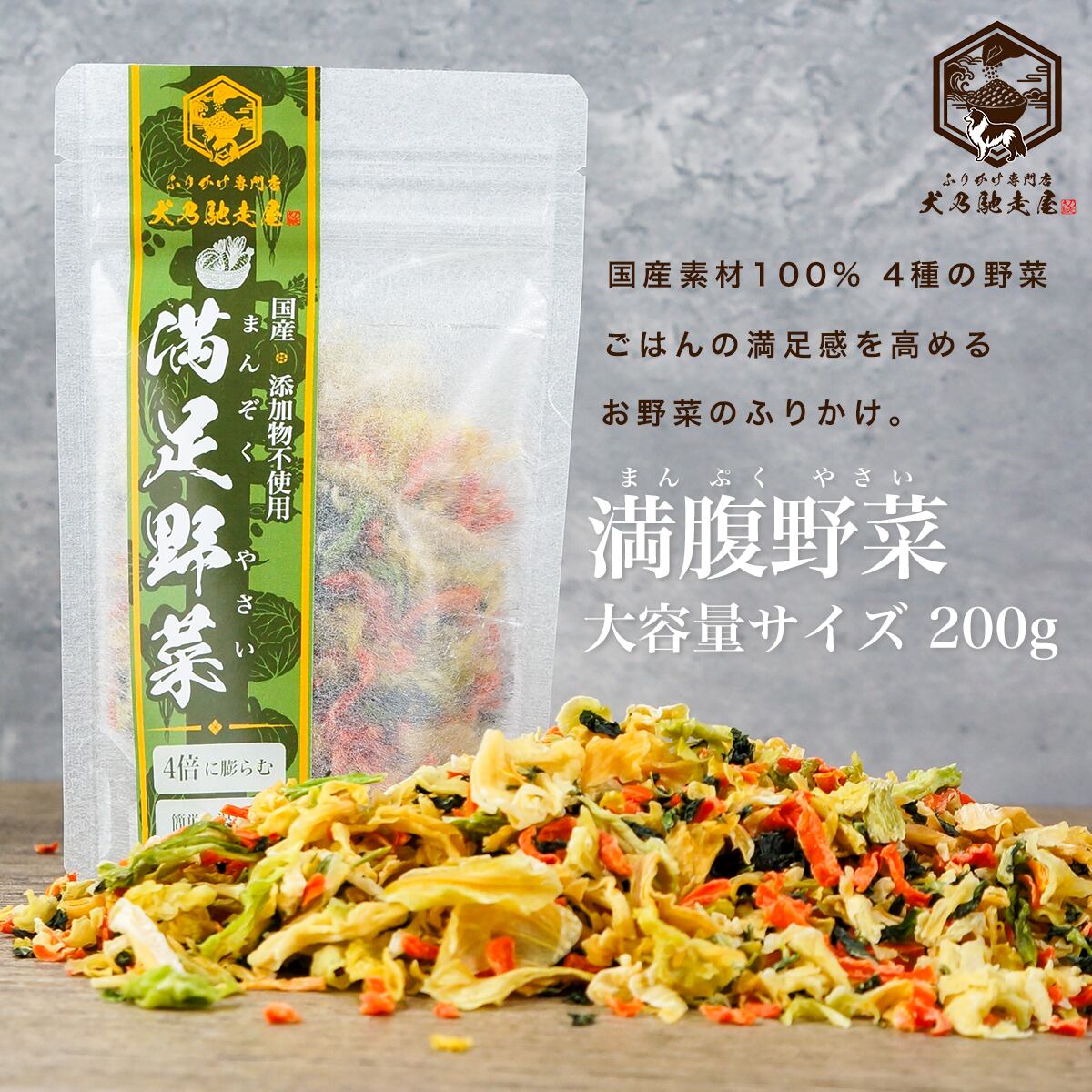 『ふりかけ専門店 犬乃馳走屋』の満腹野菜ふりかけは、国産キャベツ・にんじん・小松菜・大根の4種を贅沢にブレンド。