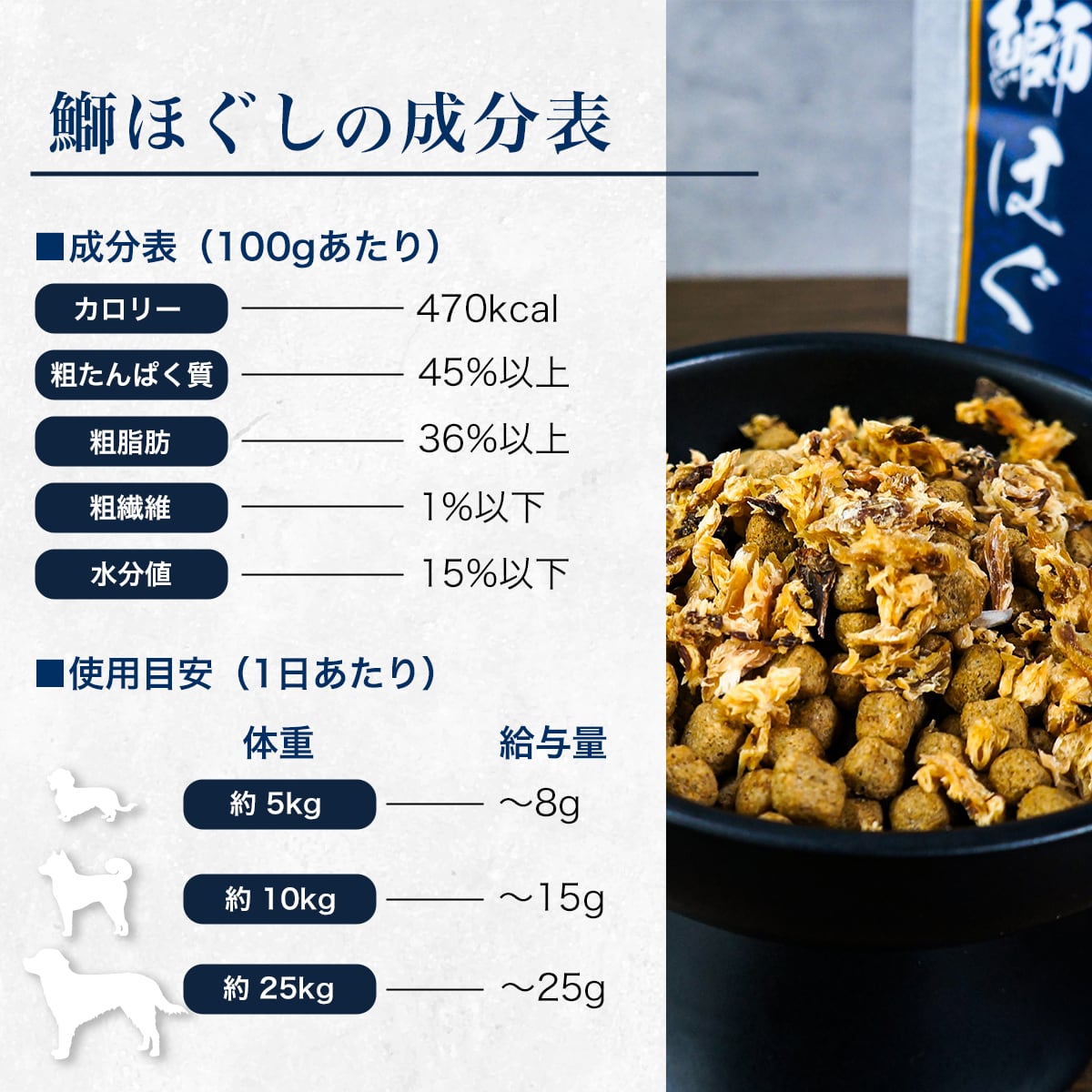 さらにぶりの脂は上質な不飽和脂肪酸と呼ばれる油で、代謝を支えながらエネルギー源にもなる栄養豊富な自然の恵み。たんぱく質も豊富に含み、シニア犬の体力維持にも役立ちます。