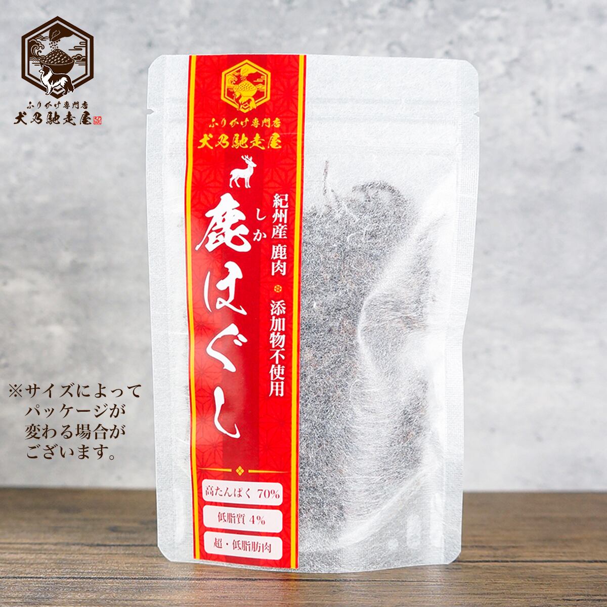『ふりかけ専門店 犬乃馳走屋』の鹿ほぐしふりかけは、紀州の自然豊かな山々で育った上質な国産鹿肉を使用。