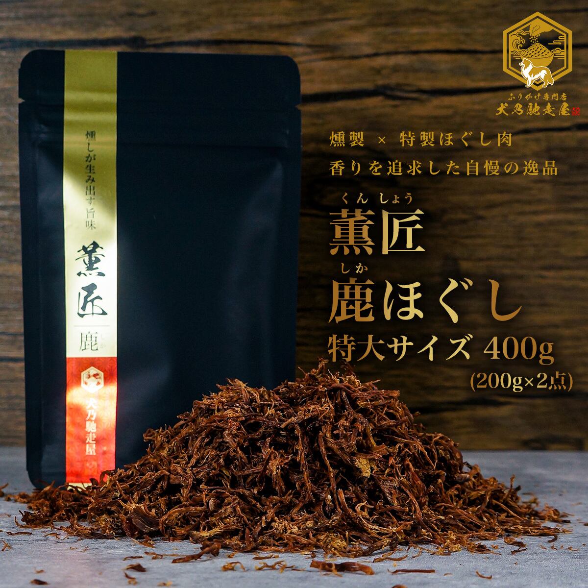 国産 無添加 薫匠 - 鹿ほぐし 400g (200g×2点) 特大サイズ 香りを追求した至極の逸品 [ メール便対象 ][ 送料無料 ][ 鹿 ]