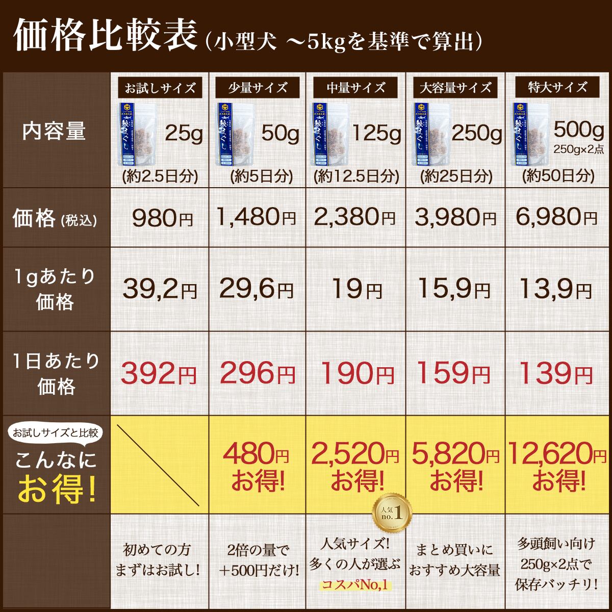 【 小型犬(5kg)】 ~10g