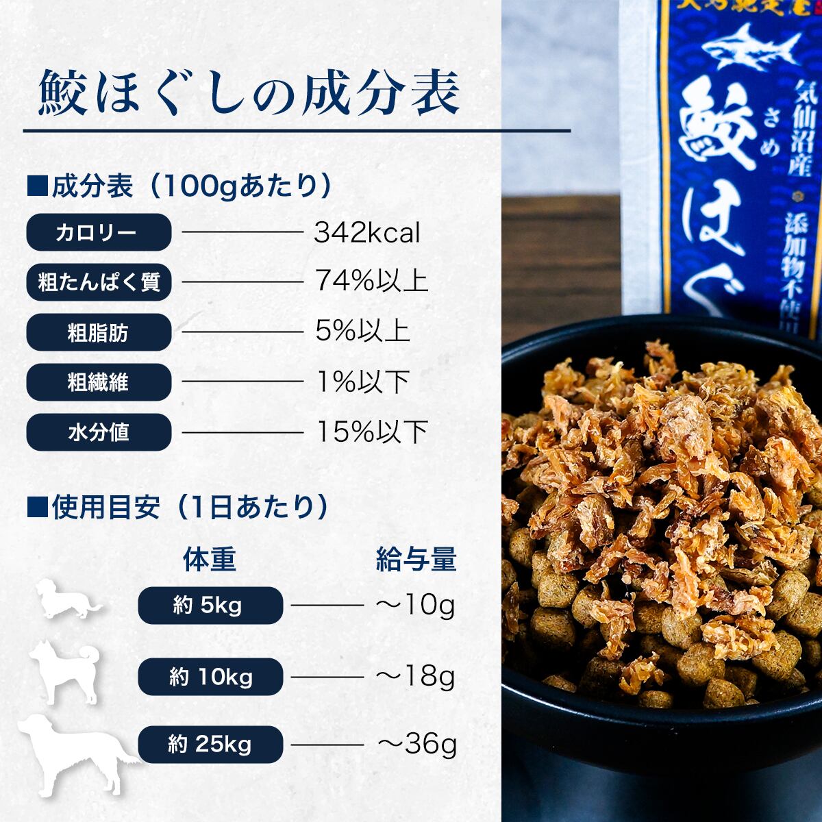 クセが少なく、脂が控えめで、たんぱく質が豊富サメ肉本来の旨味と香りをぎゅっと凝縮しています。
