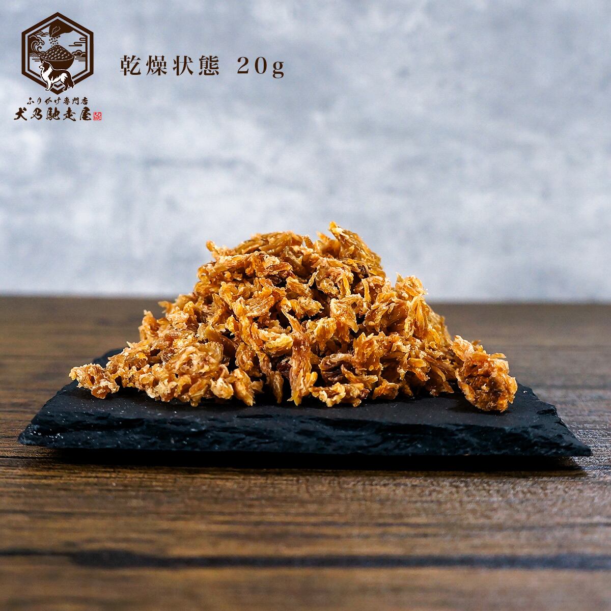 『ふりかけ専門店 犬乃馳走屋』の鮫ほぐしは、日本有数の気仙沼産 新鮮なサメ肉だけを使用し、一つひとつ丁寧に手作業でほぐしました。