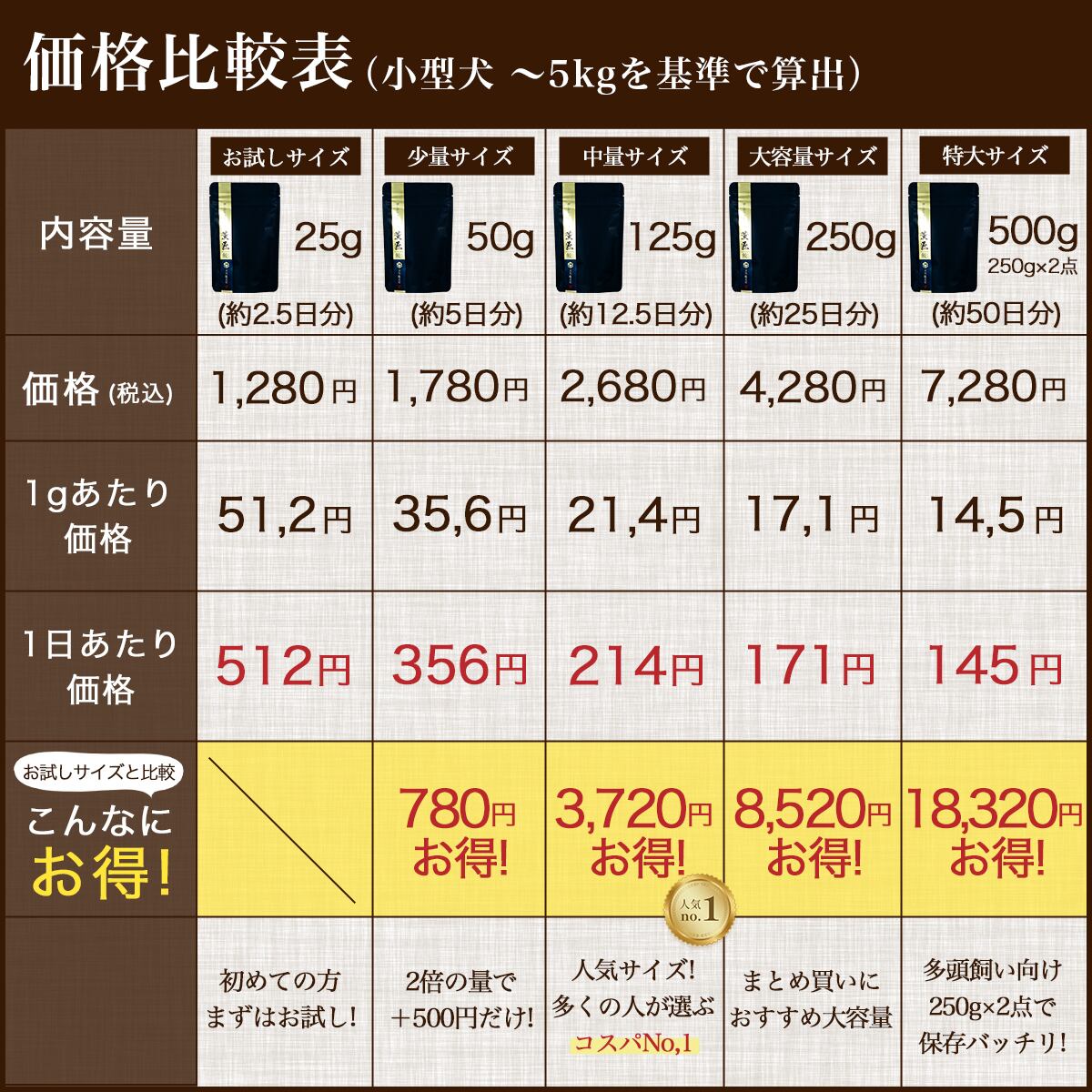 【 小型犬(5kg)】 ~10g